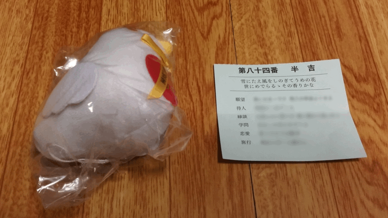 おみくじの結果が「半吉」とちょっと微妙な結果。