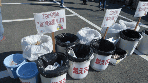 会場のちょうど中央辺りにゴミコーナーがあり、ちゃんと分別収集されていました。