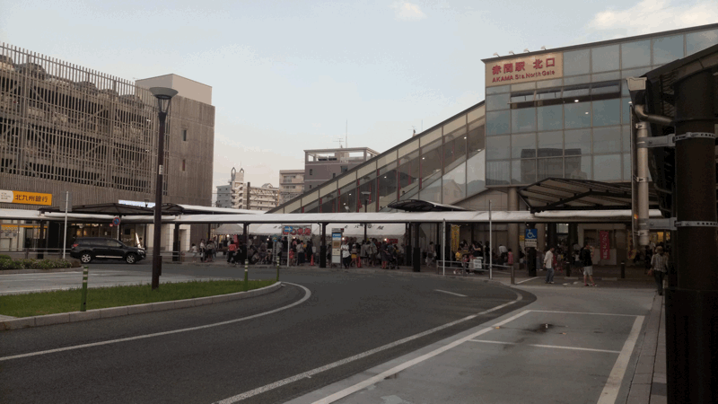 赤間駅の北口側で毎年開催されている「赤間駅前 カムカム祭り」。