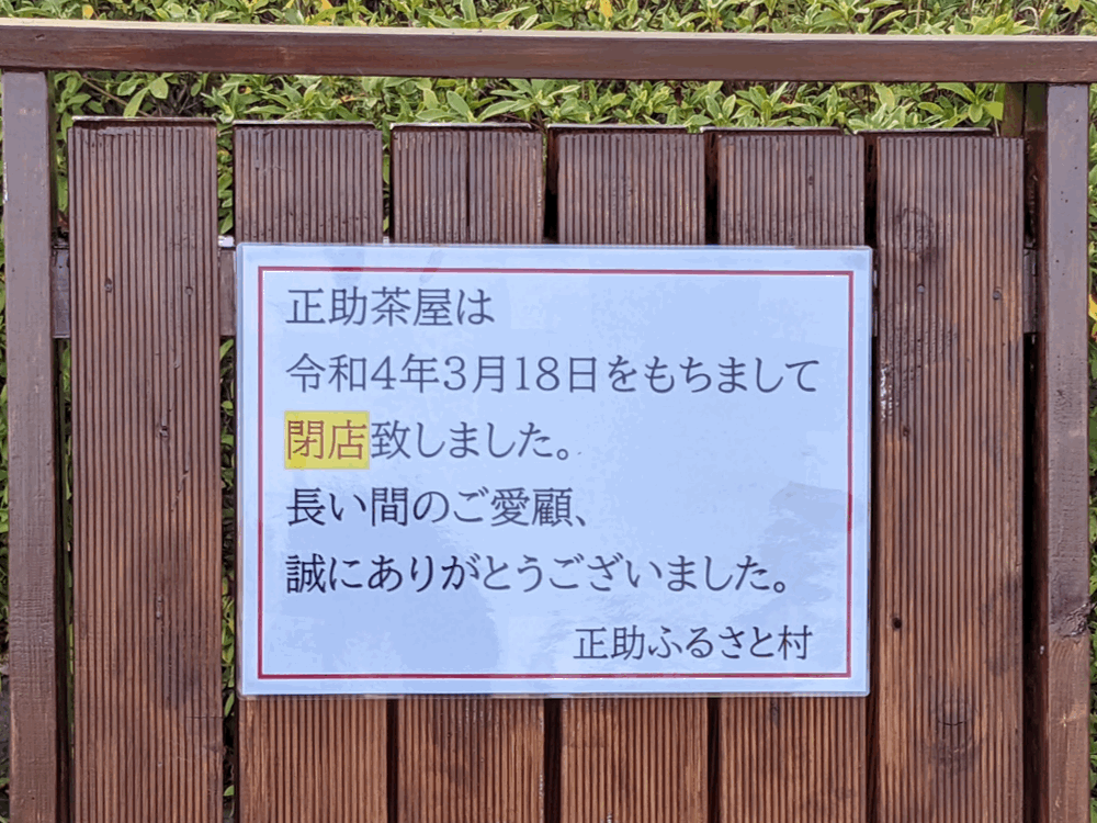 「正助茶屋は令和4年3月18日をもちまして閉店致しました。」と記載がありました。