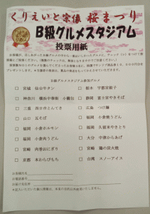 「B級グルメ」を購入すると投票用紙を貰うことができます。これで、気に入ったグルメにチェックを入れて投票します。