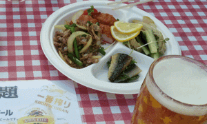 昨年に引き続き、今年もまた赤間駅前の「赤間ステーションホテル」「屋上ビアガーデン」に行きました。赤間駅周辺を一望しながらビールを飲むのもオツなものです。暑い真夏日でも、夕方の屋上は涼しく、のんびりと食事を楽しむことができます。